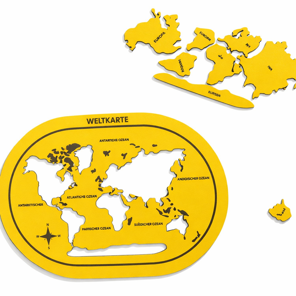 Weiterführende Links zu "Kinder Puzzle Weltkarte aus MDF 30x21 cm – Lernspiel Holz Kontinente Gelb"