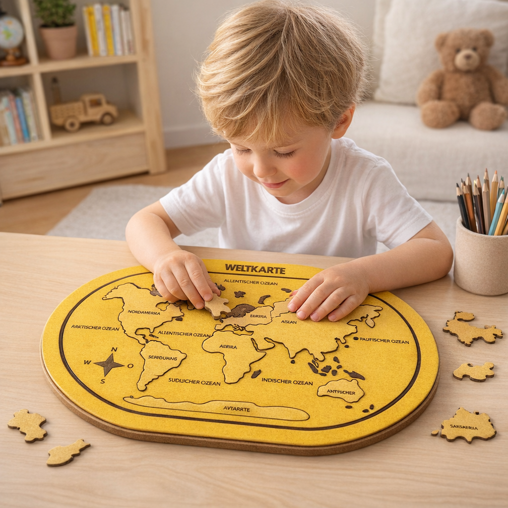 Ob im Kinderzimmer, Kindergarten oder Lernbereich – diese Puzzle-Weltkarte verbindet Lernen, Spielen und Entdecken auf natürliche Weise und ist gleichzeitig eine schöne Geschenkidee für neugierige Kinder.