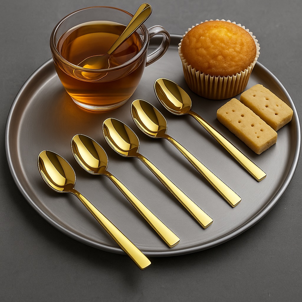 Set aus 6 Goldfarbenen Teelöffeln – Hochwertiger Edelstahl, Titanbeschichtet