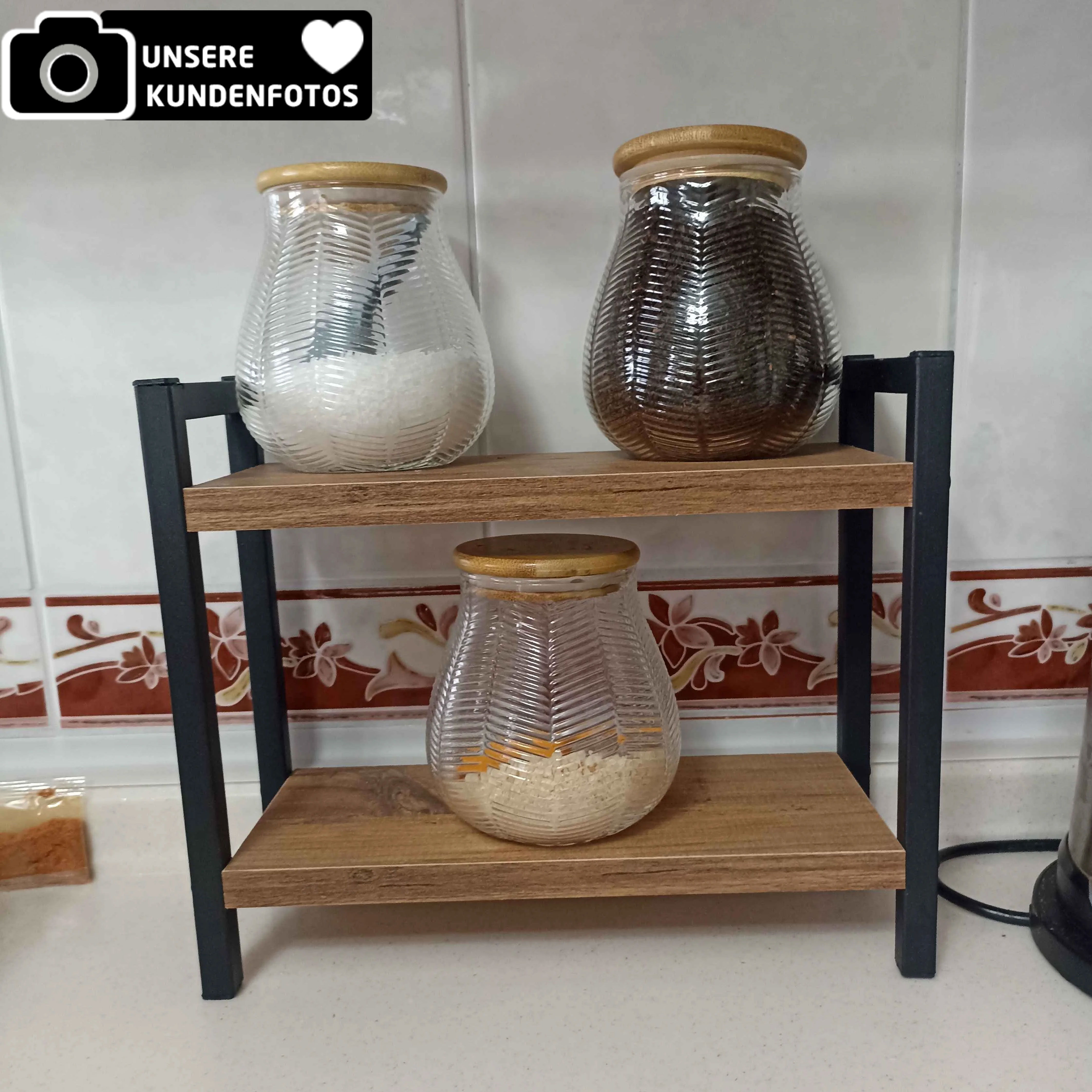 Bitte beachten Sie: Im Lieferumfang ist ausschließlich das Regal enthalten. Auf den Produktbildern dargestellte Gegenstände wie Gläser, Flaschen, Gewürzdosen, Dekoration oder Küchengeräte dienen lediglich der Veranschaulichung und sind nicht Bestandteil des Angebots.