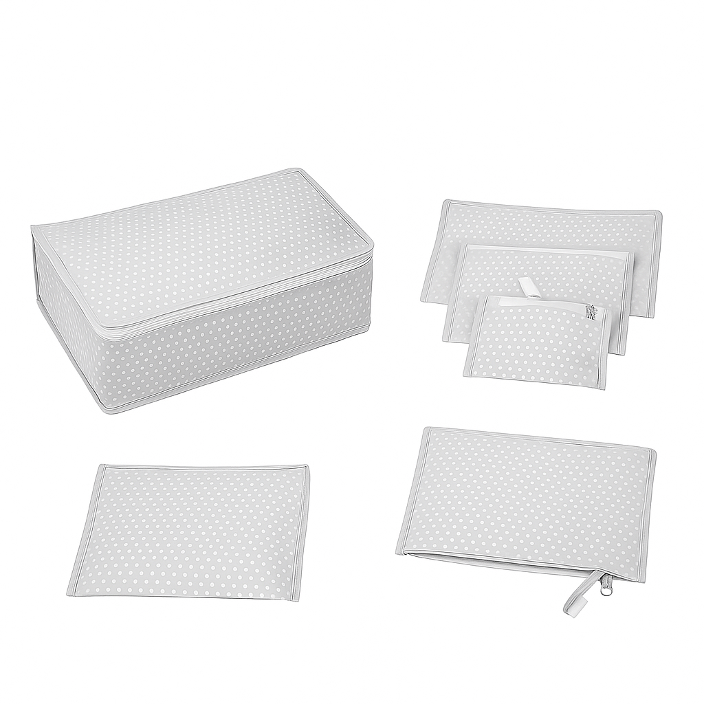 Ob für Geschäftsreisen, Urlaube oder Wochenendausflüge – mit dem 6-teiligen Koffer-Innenorganizer von Jungengel behalten Sie stets den Überblick. In stilvollem Grau mit weißen Punkten bietet dieses Set die perfekte Lösung für eine strukturierte, platzsparende und saubere Gepäckorganisation. Die verschiedenen Größen sorgen dafür, dass Kleidung, Unterwäsche, Accessoires oder Kosmetika getrennt voneinander ordentlich verstaut werden können – ohne Chaos im Koffer. Durch das robuste, dennoch leichte Material ist das Set besonders langlebig und ideal für Vielreisende.