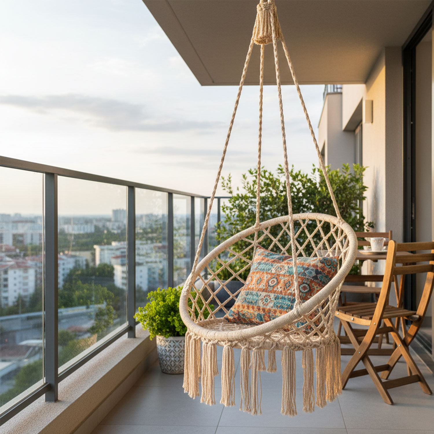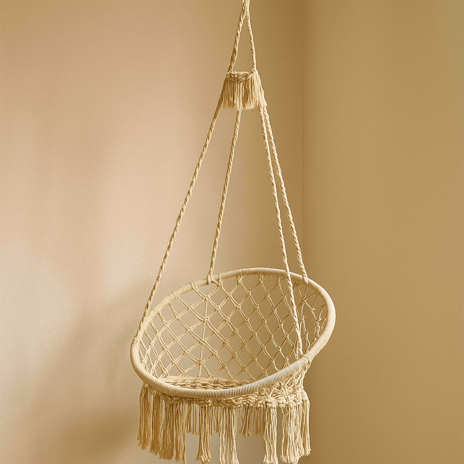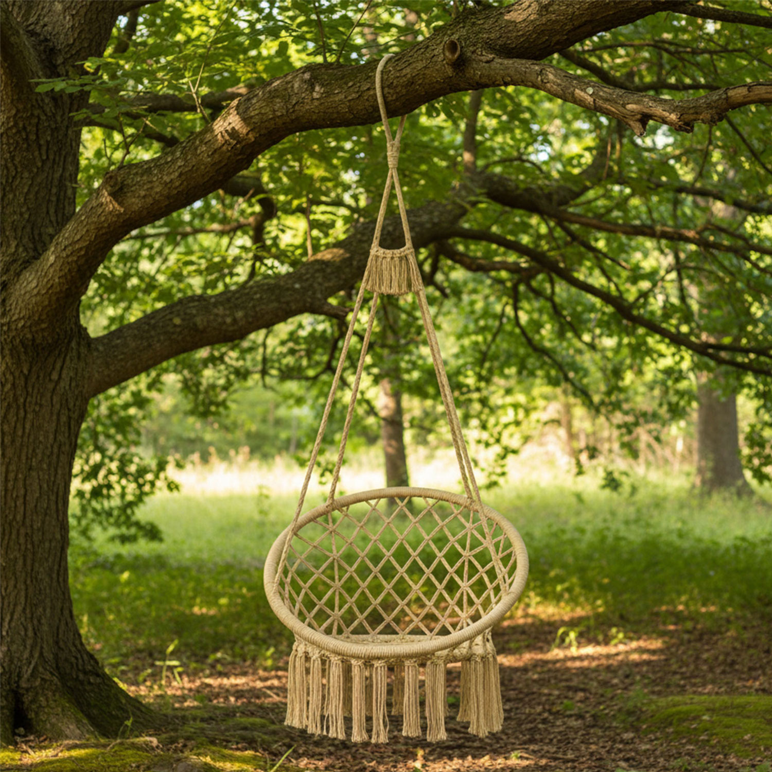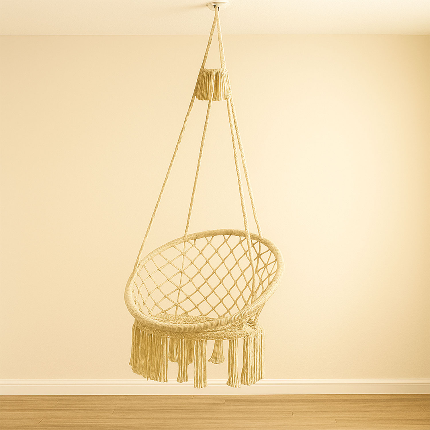 Der XXL Hängesessel bietet eine geräumige Sitzfläche und eine handgefertigte Seilkonstruktion, die eine maximale Tragkraft von 125kg gewährleistet. Mit seiner robusten Bauweise ist er für jedes Zuhause ideal geeignet. Entspannen und genießen Sie eine komfortable Sitzmöglichkeit, die bis ins kleinste Detail durchdacht ist.