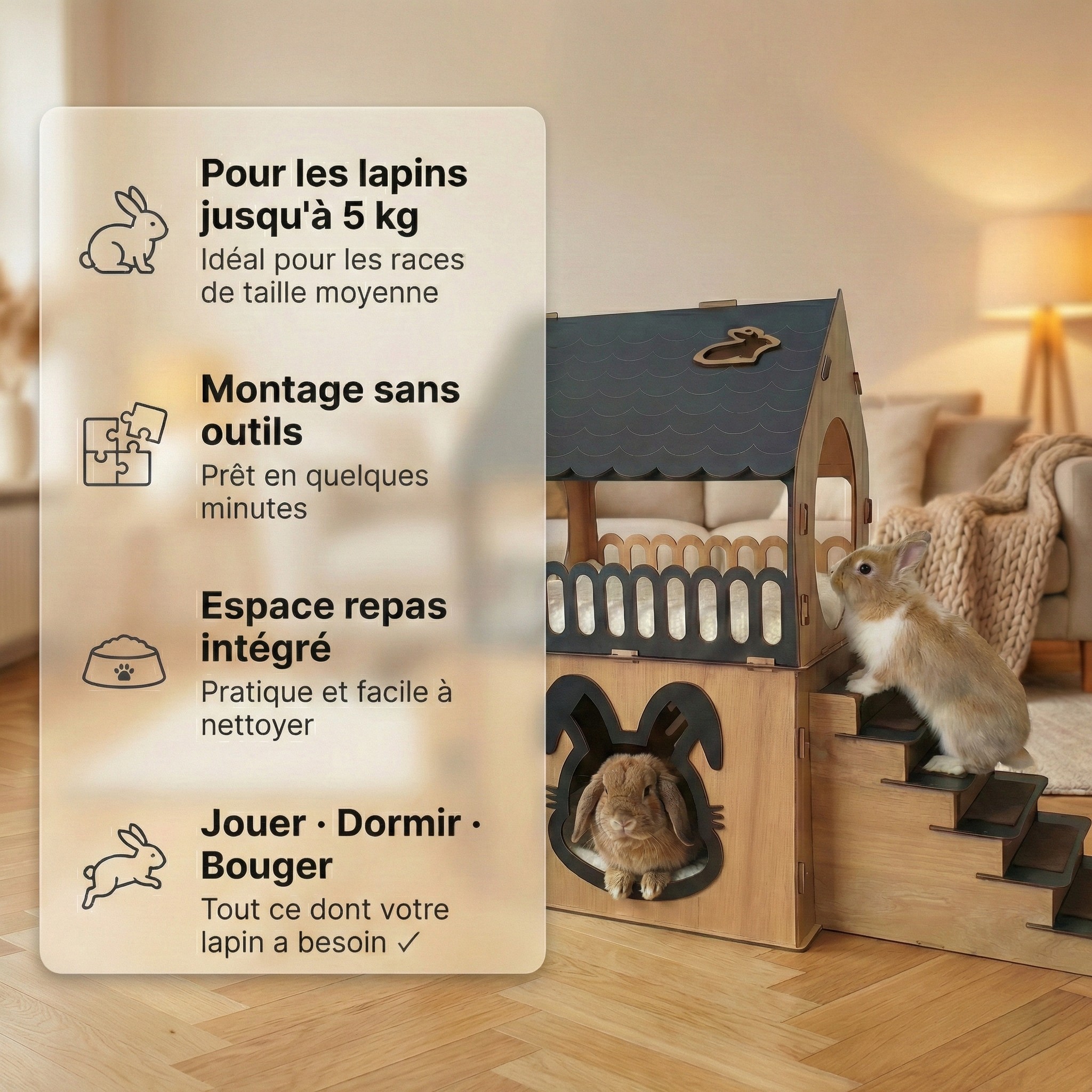 - Bietet genügend Platz für 1 oder 2 Hasen, um zu spielen und zu entspannen