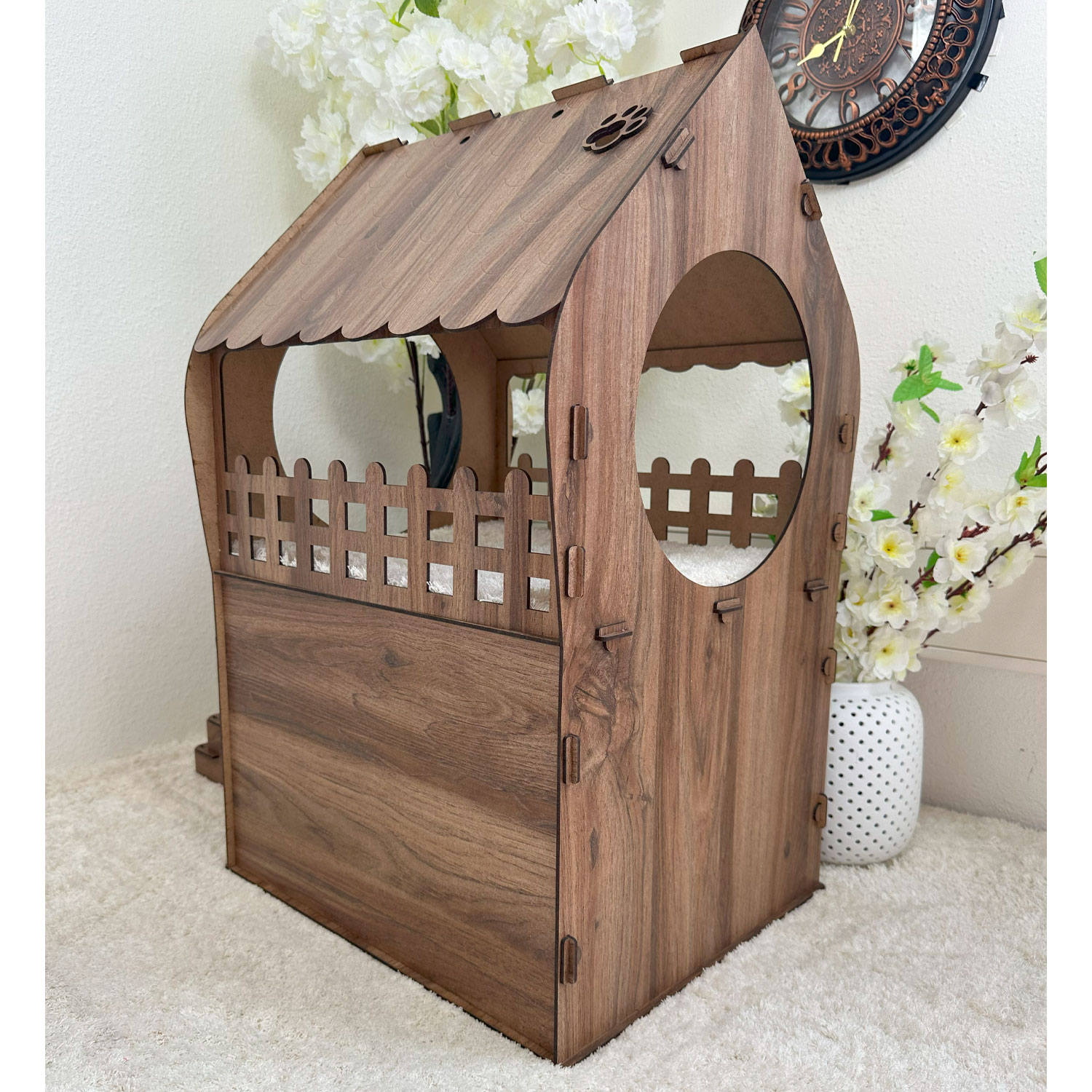 Das Katzenhaus ist ausschließlich für den Innenbereich vorgesehen und nicht wetterfest.