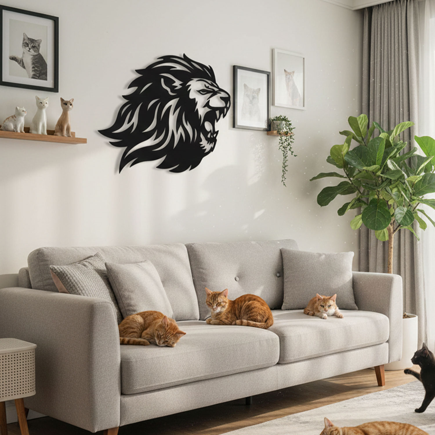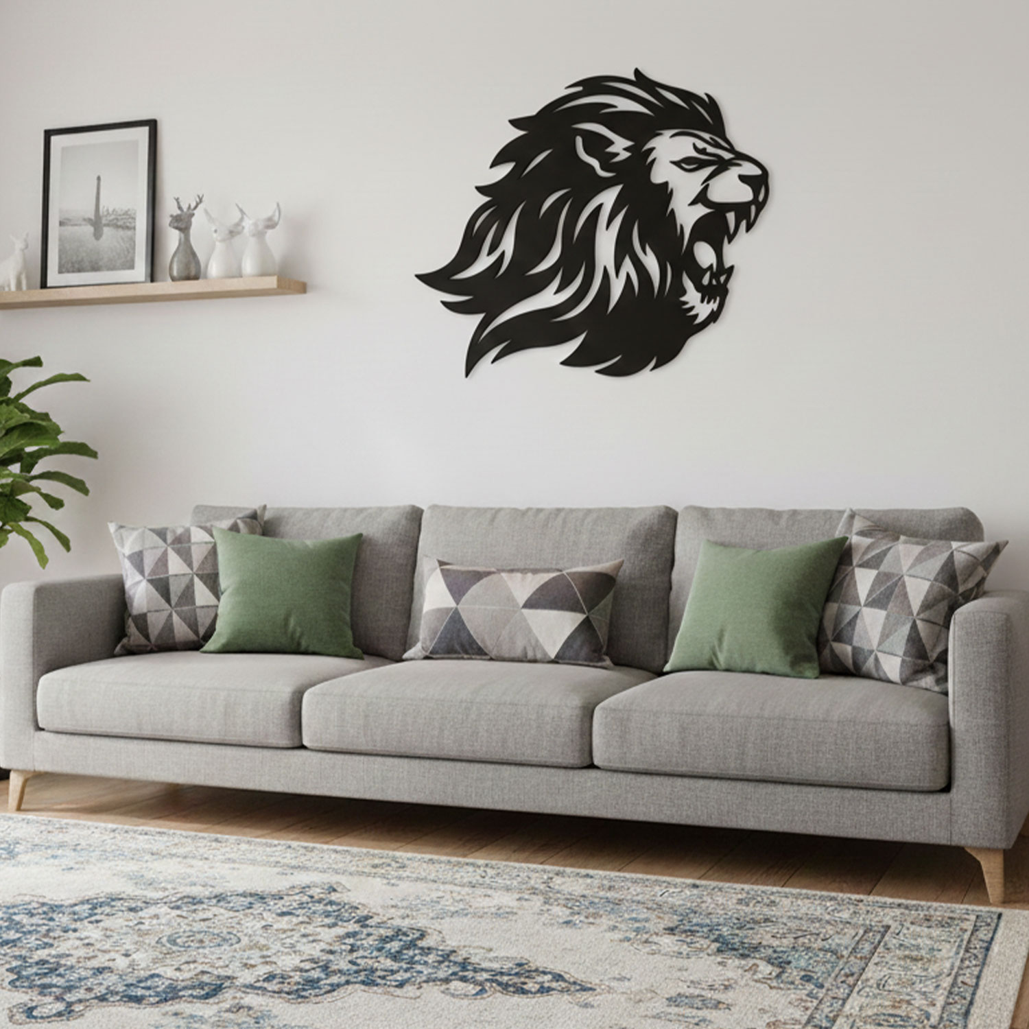 Diese moderne Wanddekoration mit brüllendem Löwenmotiv ist ein echtes Statement-Piece für alle, die kraftvolles Design und klare Linien lieben. Das detailreiche Löwenkopf-Motiv steht für Stärke, Mut und Selbstbewusstsein und setzt in jedem Raum einen markanten, urbanen Akzent.